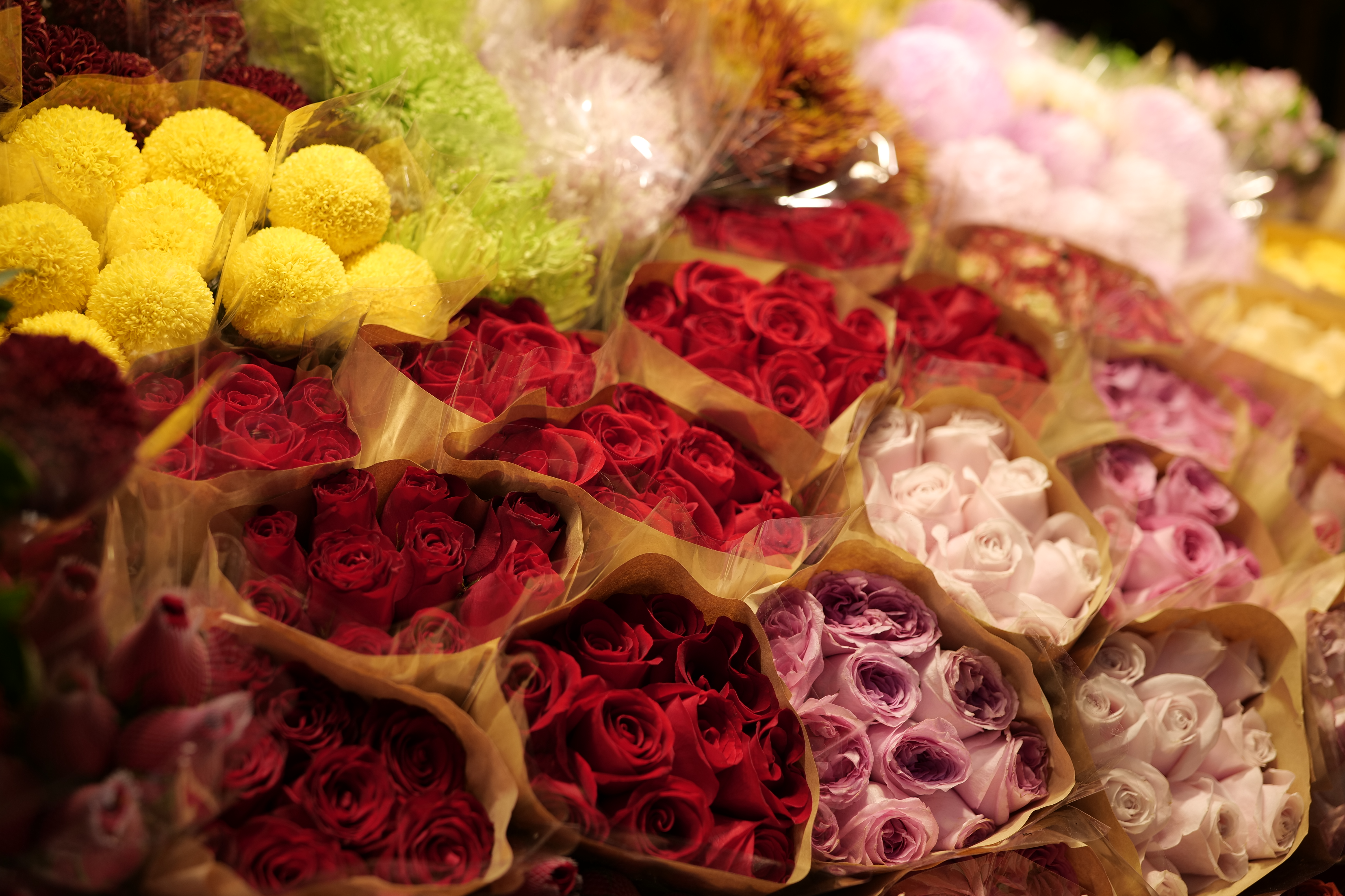转过一个弯,便是令人屏息的鲜切花区。这里是色彩的狂欢,也是练习色彩构图与光影捕捉的绝佳场所。