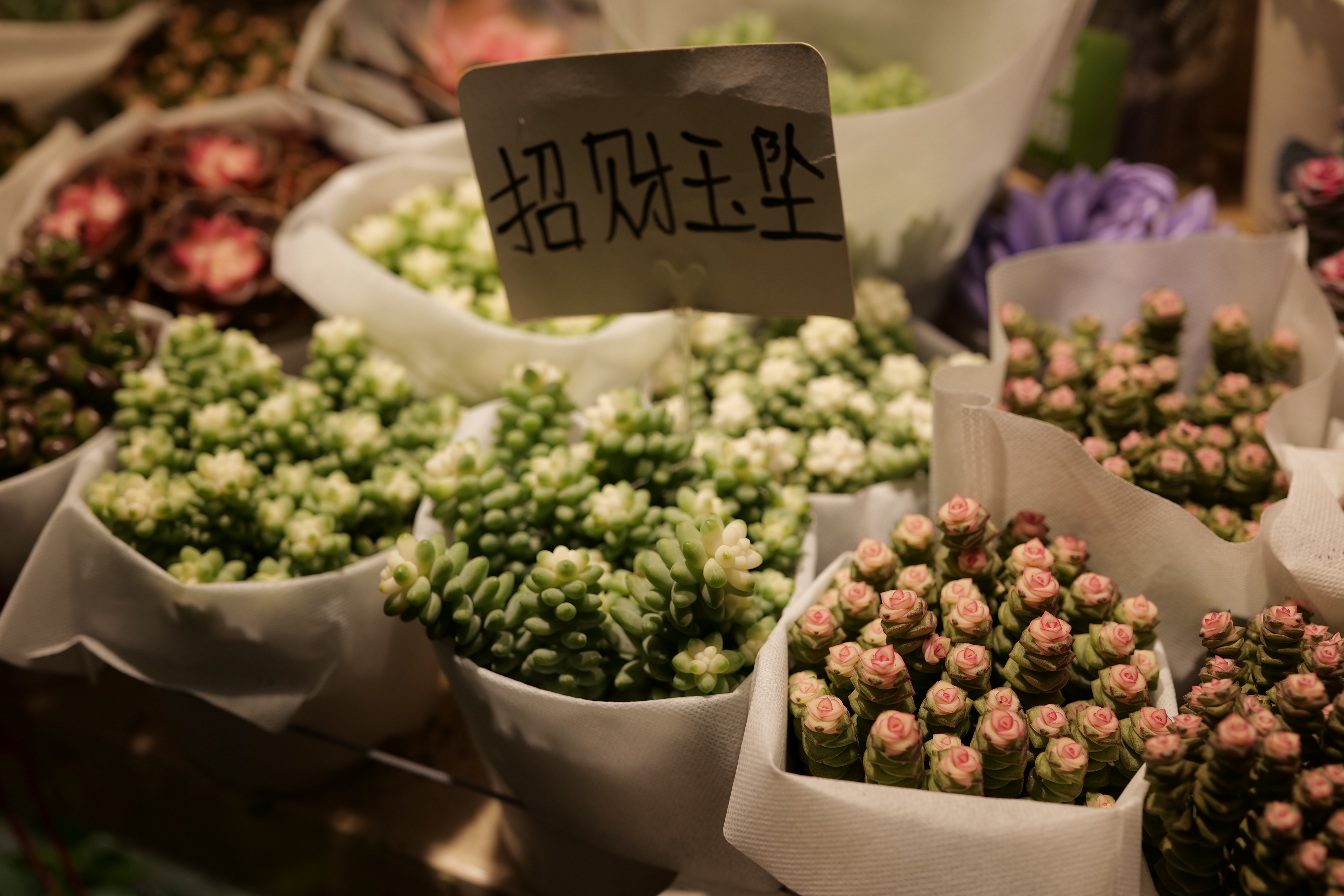 走进市场,首先迎接你的总是一片深浅不一的绿。在多肉植物的摊位前,我总会不由自主地蹲下来。